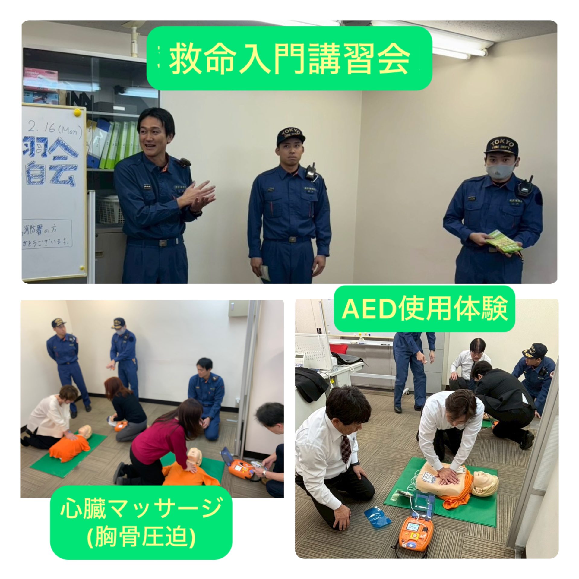 このたび、社会貢献活動の一環として「救命入門コース」を受講いたしました。社内で社会貢献について検討する中、消防団員として活動しているスタッフより「万が一に備え、救命処置を学んでみてはどうか」との提案があり、今回の実施に至りました。